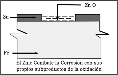 La capa de zinc es controlada por el lapso de tiempo que pasa sumergida en el baño de zinc así como también por la velocidad con que la pieza es retirada. El revestimiento logrado protege por partida doble al acero. En primer lugar como un escudo impermeable que cubre todo el conjunto. En segundo lugar en el caso de ocurrir un desconchamiento durante el proceso de transporte e instalación, el zinc circundante actuará como ánodo de sacrificio ante la acción de la corrosión.