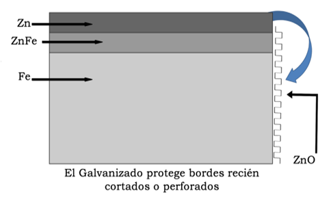 Durante el proceso de fabricación de artículos con láminas Pre galvanizadas, tanto los bordes recién cortados como las zonas donde se soldó pierden la capa de zinc, sin embargo, el zinc más cercano al área desnuda pasa a convertirse en un ánodo de sacrificio que protegerá esa zona de la corrosión.